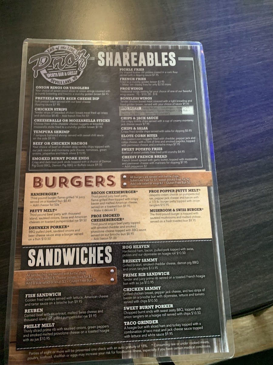 Welcome to Proz Sports Bar Grille & Caboose, nestled in the heart of Devils Lake, ND. This vibrant spot offers a diverse menu designed to satisfy every palate. Start with their Grilled or Crispy Chicken Salad—a fresh mix of greens adorned with chicken and savory toppings. For something heartier, indulge in the Fettuccini, where tender noodles meet a rich, creamy Alfredo sauce, customizable to your taste with spicy Cajun flair.