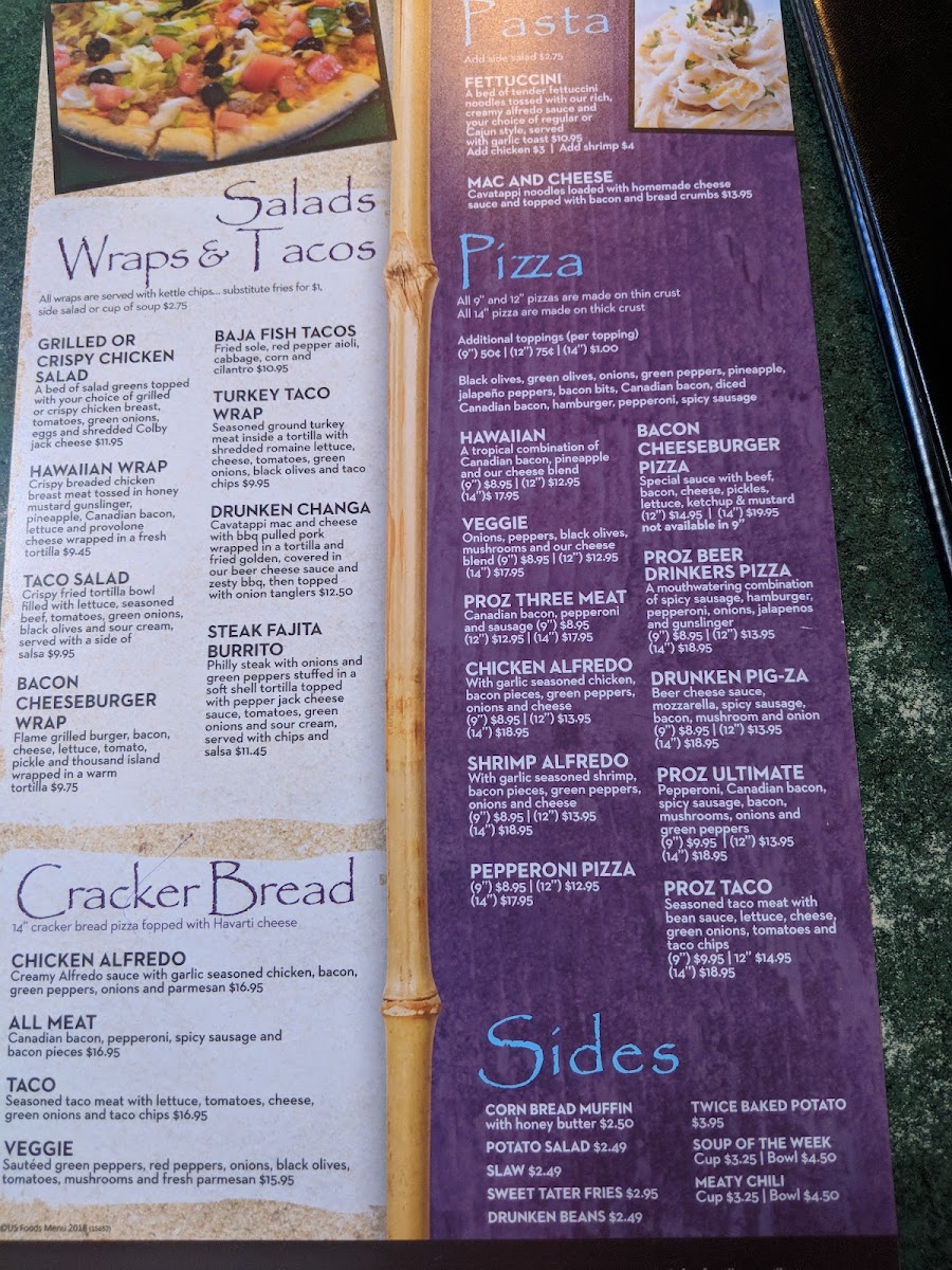 Don’t miss the 3-meat Pizza, acclaimed by locals for its mouthwatering toppings, especially the Canadian Bacon—a true crowd-pleaser. The atmosphere is electric, with numerous TVs showcasing sports, making it the perfect backdrop for enjoying a meal. With friendly service and a welcoming vibe, Proz is praised not just for its food but also for the genuine hospitality that keeps patrons returning. Whether it’s wings, sandwiches, or kids' meals, this spot is a must-visit for food lovers.